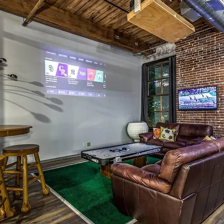 Das Busch Stadion ist nur 18 Fußminuten von der 167 m² großen Ferienwohnung Denim Lofts-Sports Dwtn Loft-Projector Tv-Poker Table-Balcony-2C Saint Louis entfernt, während sich Washington Avenue Historic District in der Nähe befindet.